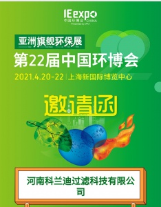 河南科蘭迪過濾科技有限公司將于2021年4月20日-4月22日參加為期3天的產(chǎn)品展覽,邀請各屆朋友來我司展臺(tái)參觀考察。恭候您的光臨!