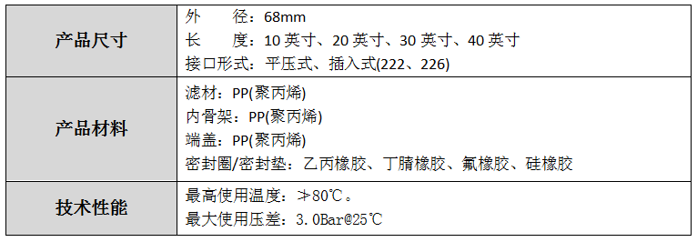 骨架及端蓋為聚丙烯PP材質(zhì),濾芯整體采用熱熔焊接技術(shù)成型,無污染,無介質(zhì)脫落